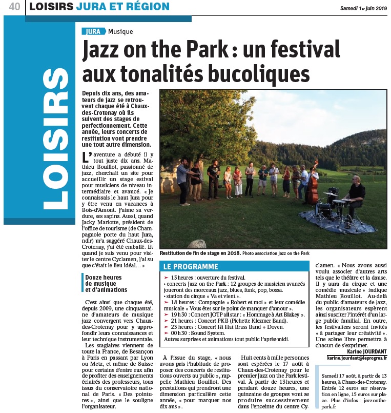 Près de Chaux-des-Crotenay, petit village gaulois qui revendique être le véritable site d’Alésia. Il est situé dans le Parc Naturel Régional du Haut Jura, (d’où le « Park » de Jazz On The Park).